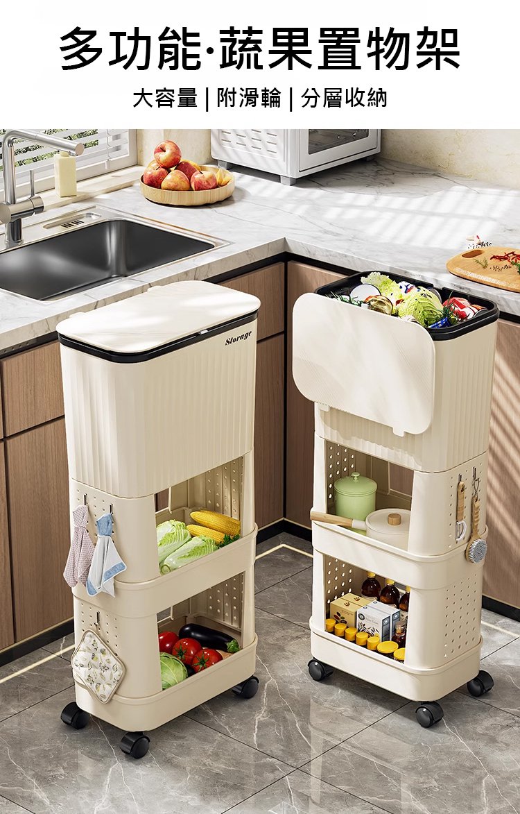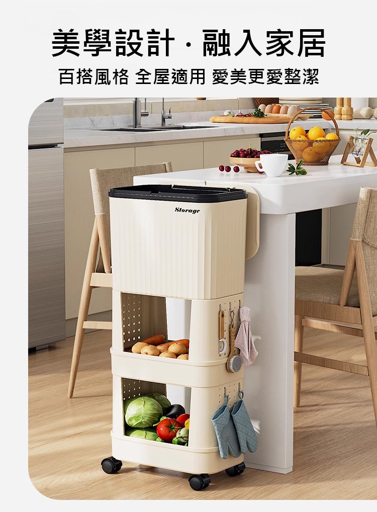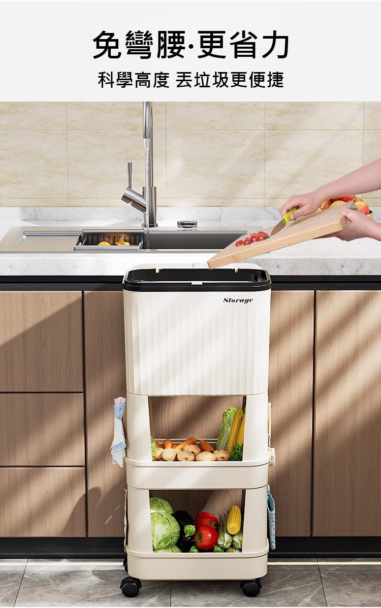 15分鐘前【不彎腰】家用可移動多功能置物垃圾桶 - 【超殺*贈20垃圾袋】1入組$279