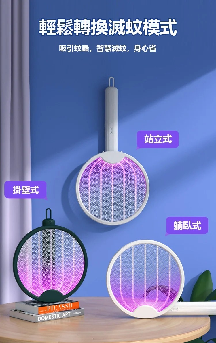 7分鐘前熱賣 四合一多功能電蚊滅蚊拍,立式/壁挂/手持式/可摺叠,雙效自動滅蚊! - 【限時下殺】1入組-NT$990